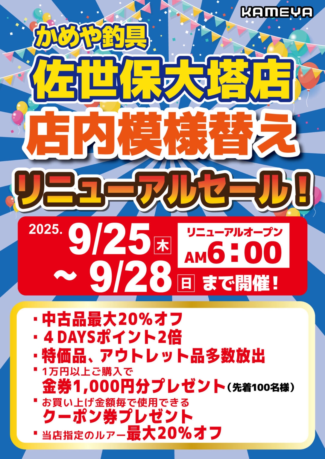 リニューアルセールと致しまして特価品やアウトレット品を多数ご用意🔥金券やクーポン券等のプレゼントもご用意しています🎁沢山のご来店お待ちしております🐢💛
