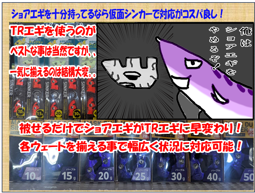 エギより全然安いので10~50gで5種くらい持ってると釣果効率は絶対上がると思います!