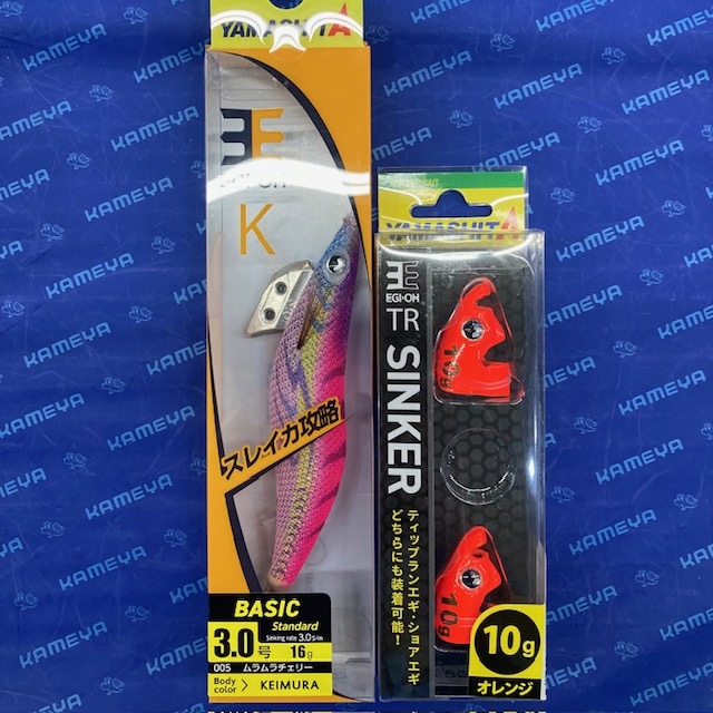 まずは手堅く陸用のエギ王K3.0ムラムラチェリーにシンカー10gをセット