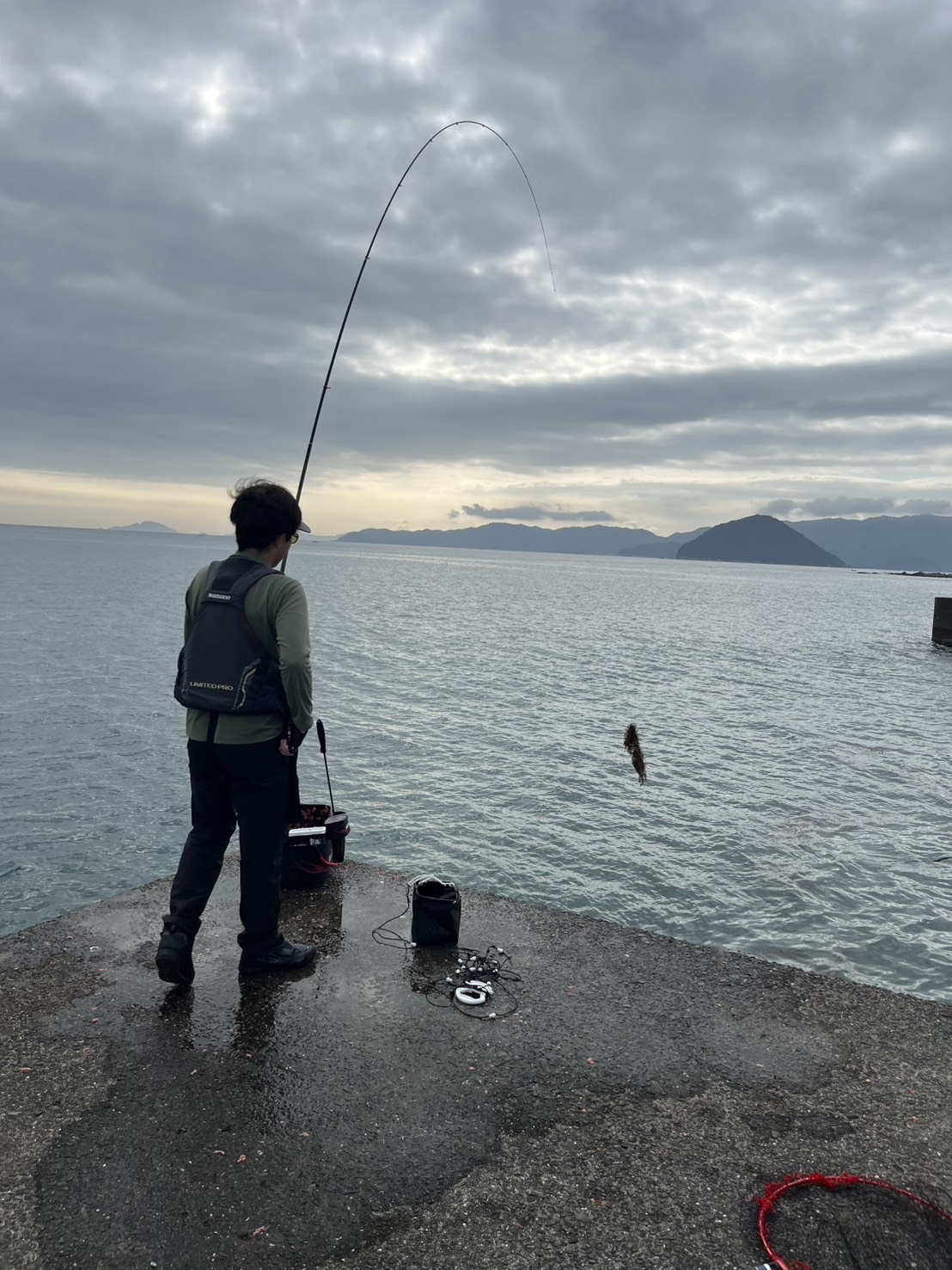 撒き餌が無くなったイシカワは残ってた付け餌で穴釣りを楽しんで