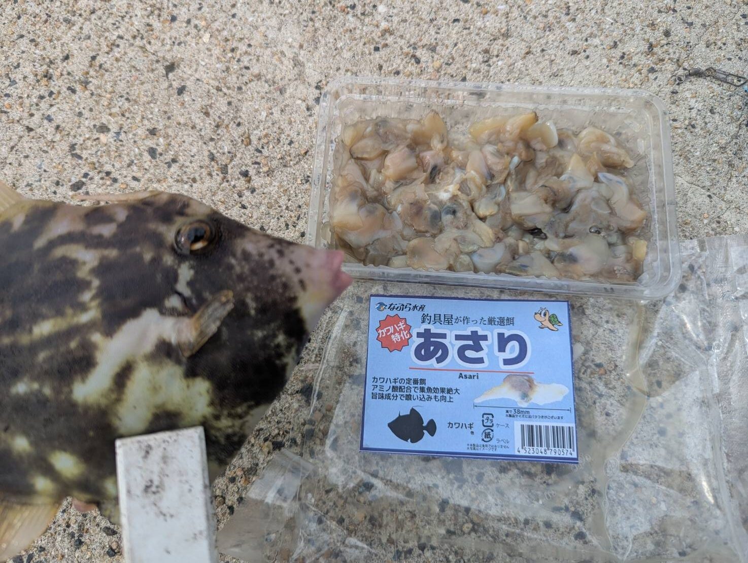 アサリを使ってもベラにかなり邪魔されるとこと、ちゃんとカワハギが釣れるとこがあって、そうなった理由もなんとなく想像つくなぁと感じたのですが、これは直接質問してくれた人にだけお話しますね~。お店でお声掛けください。