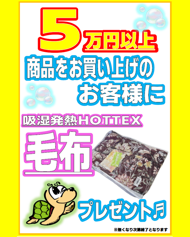 こんにちはかめや釣具長崎時津店さかいです明日から長崎限定プレゼント企画をスタート!5万円以上お買い上げのお客様を対象に毛布をプレゼントいたします