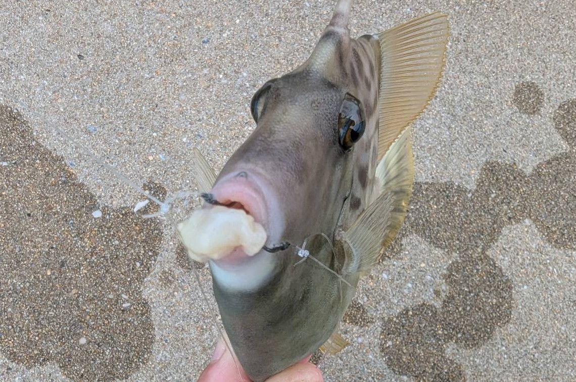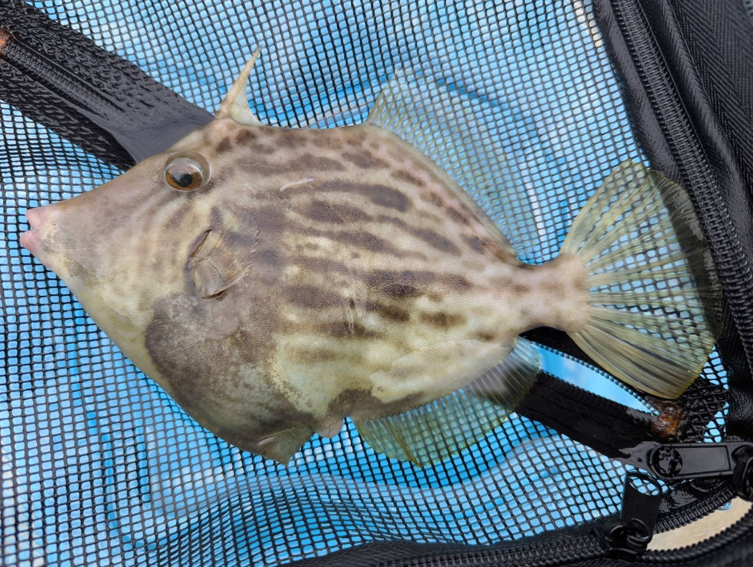 ちょっとアタリが遠のいたタイミングで明らかにカワハギではない何かがヒット