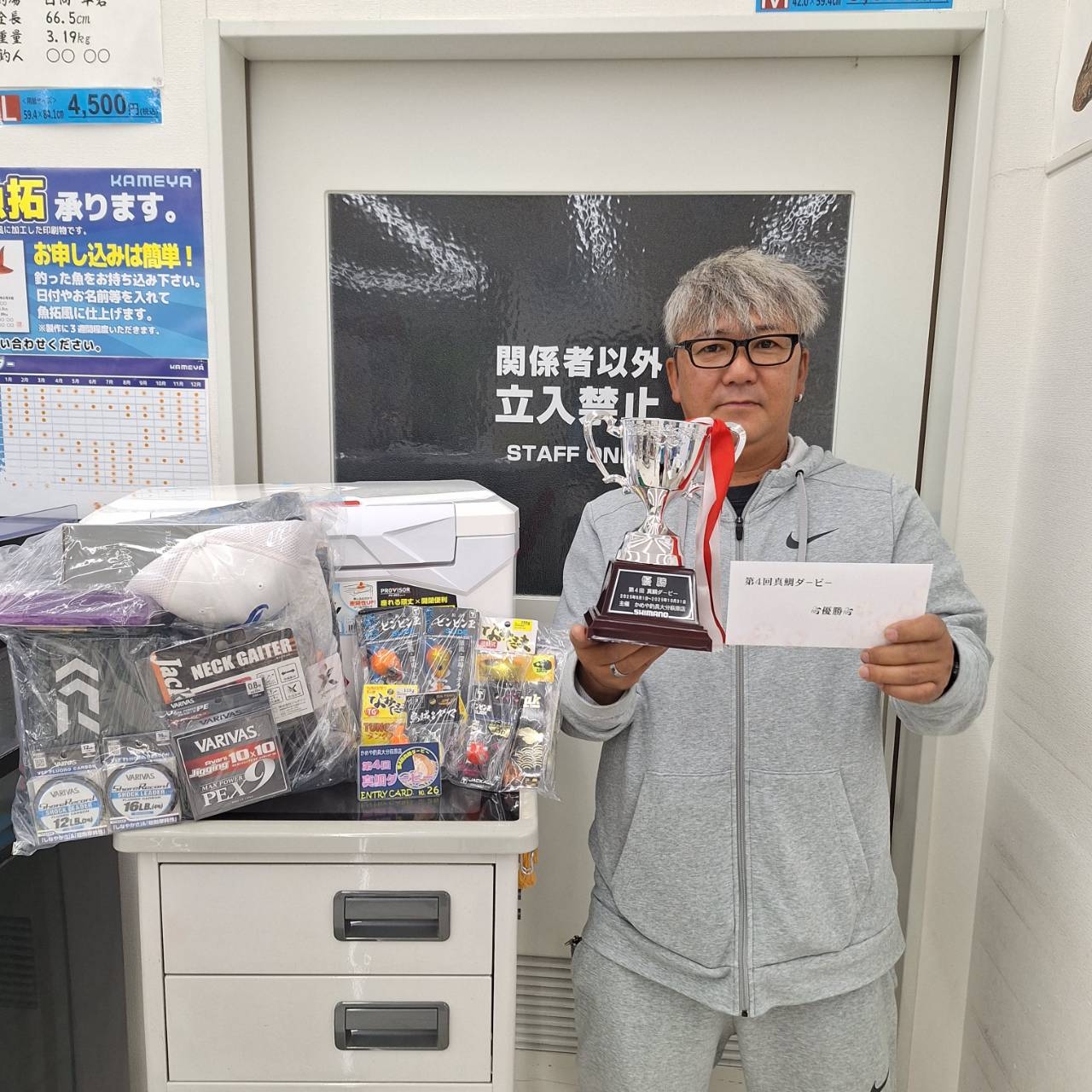 先程、第4回真鯛ダービーの覇者 『エントリーNO.26 ケンイチ様』にご来店頂きました!
