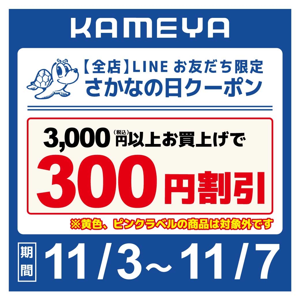 3,000円以上お買い上げ時に使える300円引きのクーポンとなっております♪