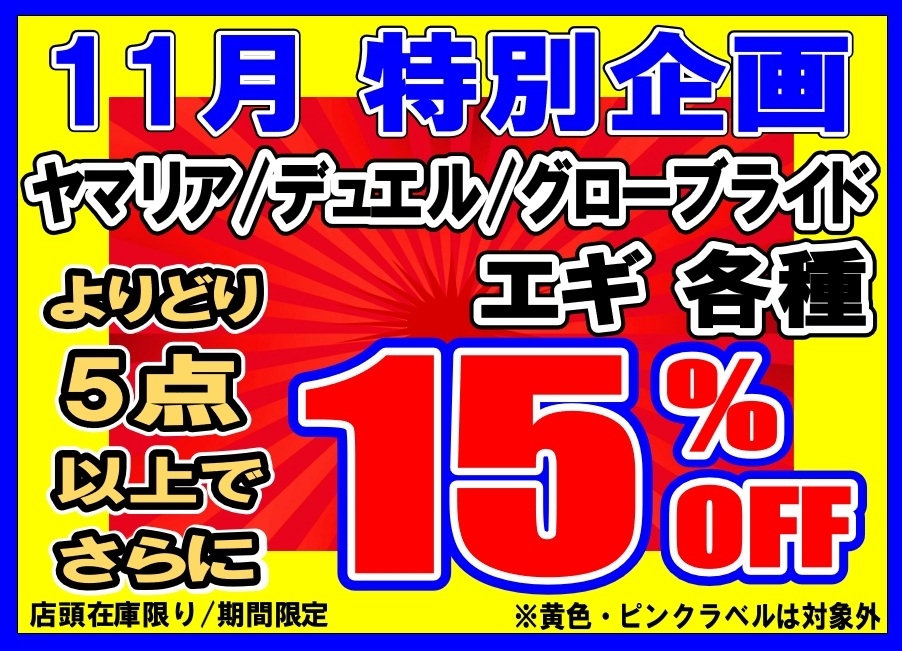 ヤマリア・デュエル・グローブライドのエギいずれかを5点以上お買い上げで