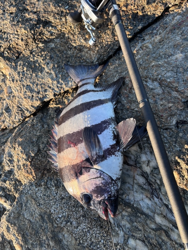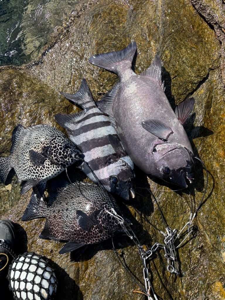最初は重く、首をフルだけ、最後らへんで物凄い締め込みで上がってきたのは、紫がかった色をした4㎏オーバーの石鯛でした。