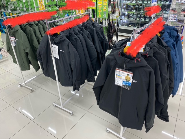 ただいま入口近くにてお手頃価格な防寒着を販売中です!