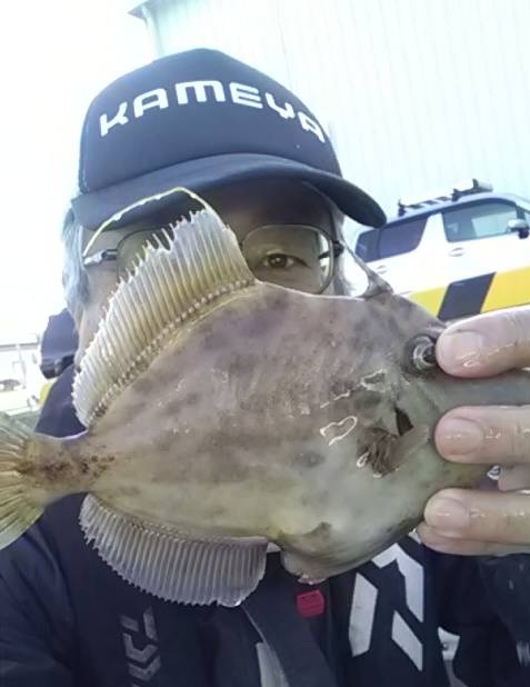 自分は叩き叩き叩き、たまにノンテンションで聞くを繰り返していて、船中ファーストヒットのカワハギをキャッチ(ワッペンサイズ)。