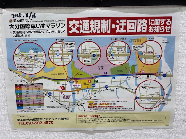 本日11月16日大分国際車いすマラソンが開催されます
