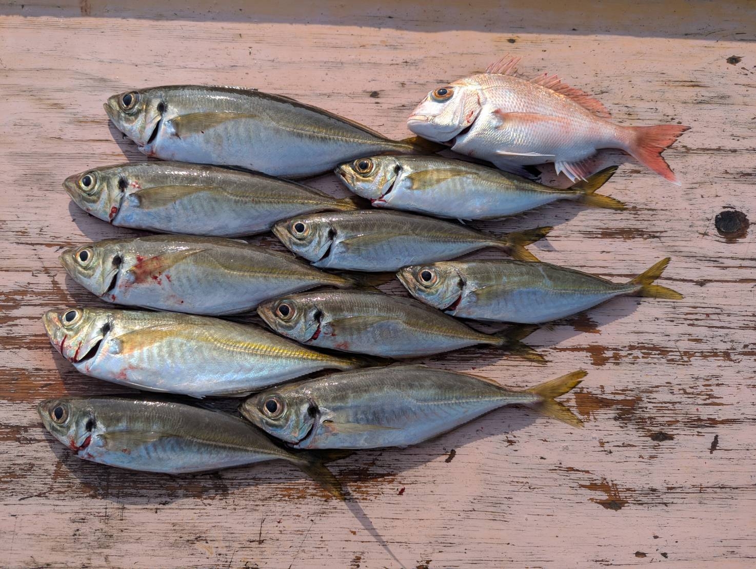 その場で自作した4lbフロロでの細糸逆ダン仕掛けに7gシンカー、0.4gジグヘッドで0テン釣法という完璧な布陣でアジを狙い撃ちました!