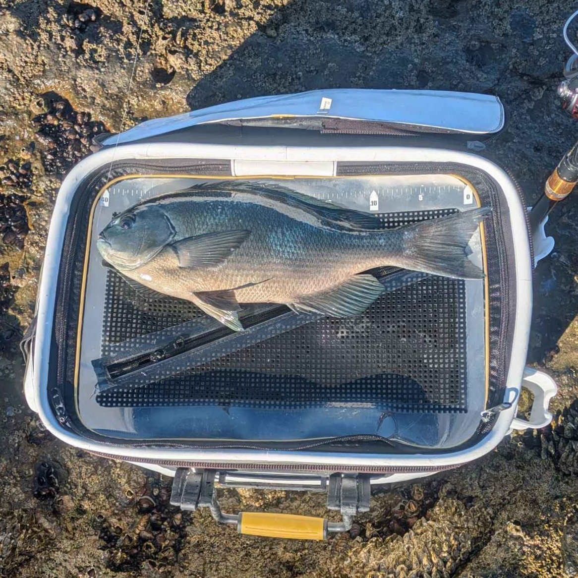 良いポイントなんで魚は居るはずと出来る事を色々やるとポツリとクロが釣れます