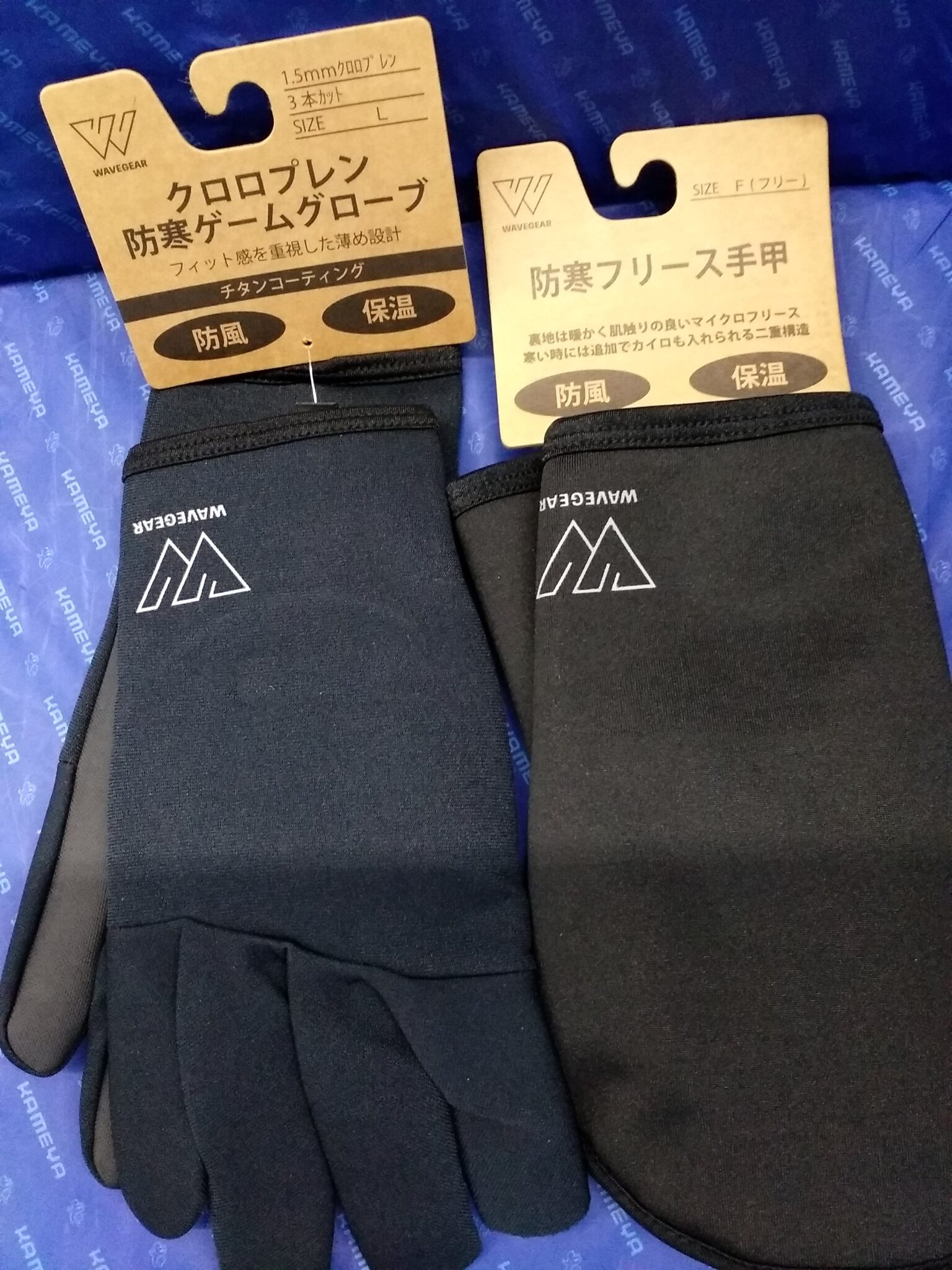左側は「クロロプレン 防寒ゲームグローブ」。チタンコーティングで防風、保温のスグレモノ。是非一度使ってみてくださいね(*^▽^*)