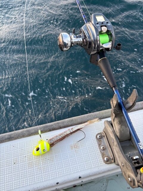 タナは終日80~160mと広く分散していましたが、タチウオの活性は高めだったので丁寧に誘ってあげるとしっかり反応あり👀