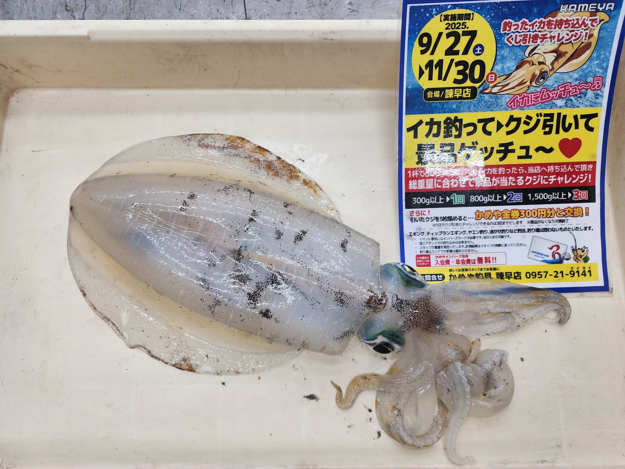 またまた、アオリイカお持ち込みを頂きました‼800g越えの綺麗なアオリイカ🦑まだまだこれから続々と続出が予想されます(^▽^)/当店でイカ釣って、クジ引いて、景品ゲッチュウ~まだまだ景品御座います‼
