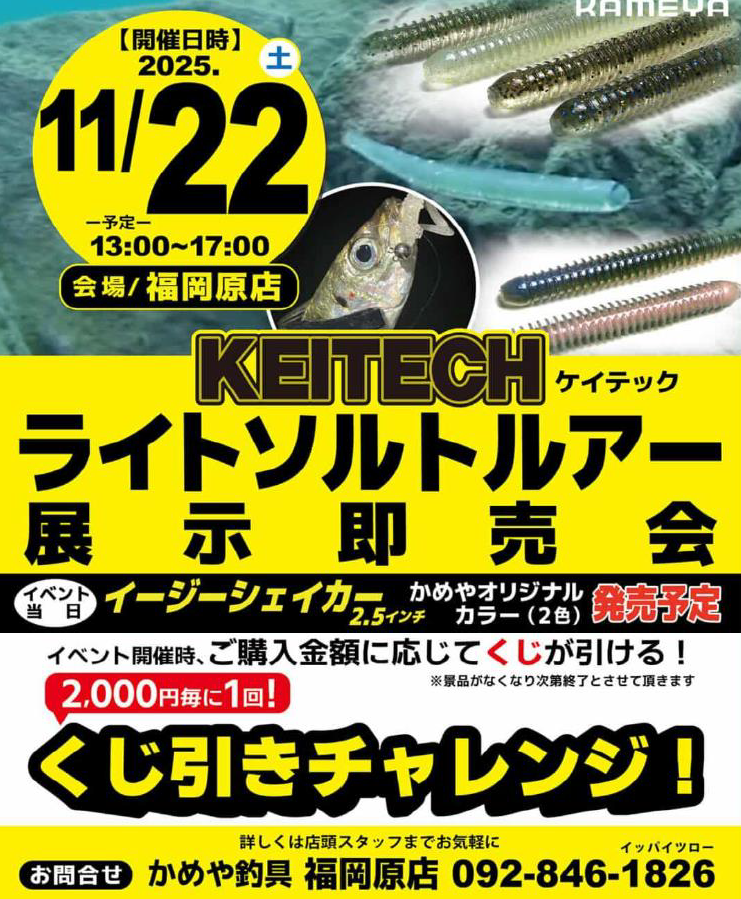 本日13時にかめや釣具福岡原店に是非お越し下さい。