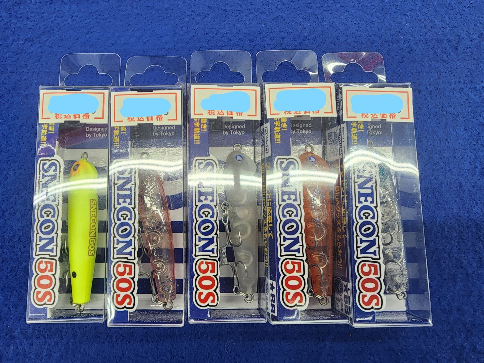 こんにちは‼かめや釣具諫早店です(*’▽’)本日ブルーブルー様より「スネコン50S」入荷しております(^▽^)/全10色少量の入荷となっております(/ω\)お買い求めのお客様はお早目のご来店をお願い致します\(^o^)/