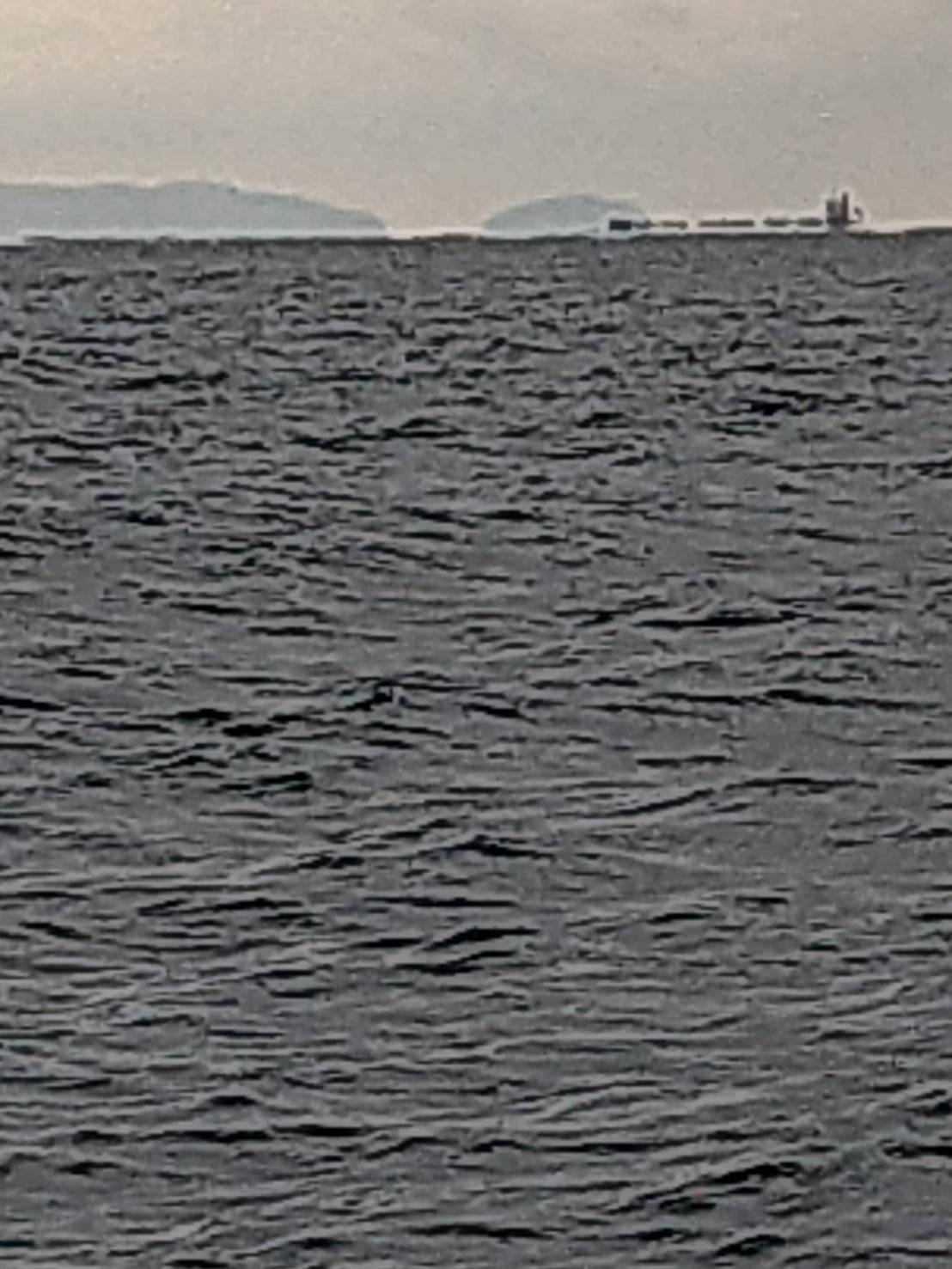蜃気楼が出まくりです(↑は島の前の船が大きく浮かび上がってます)。