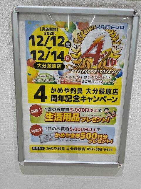 こんにちは、かめや釣具大分萩原店です(^^)/