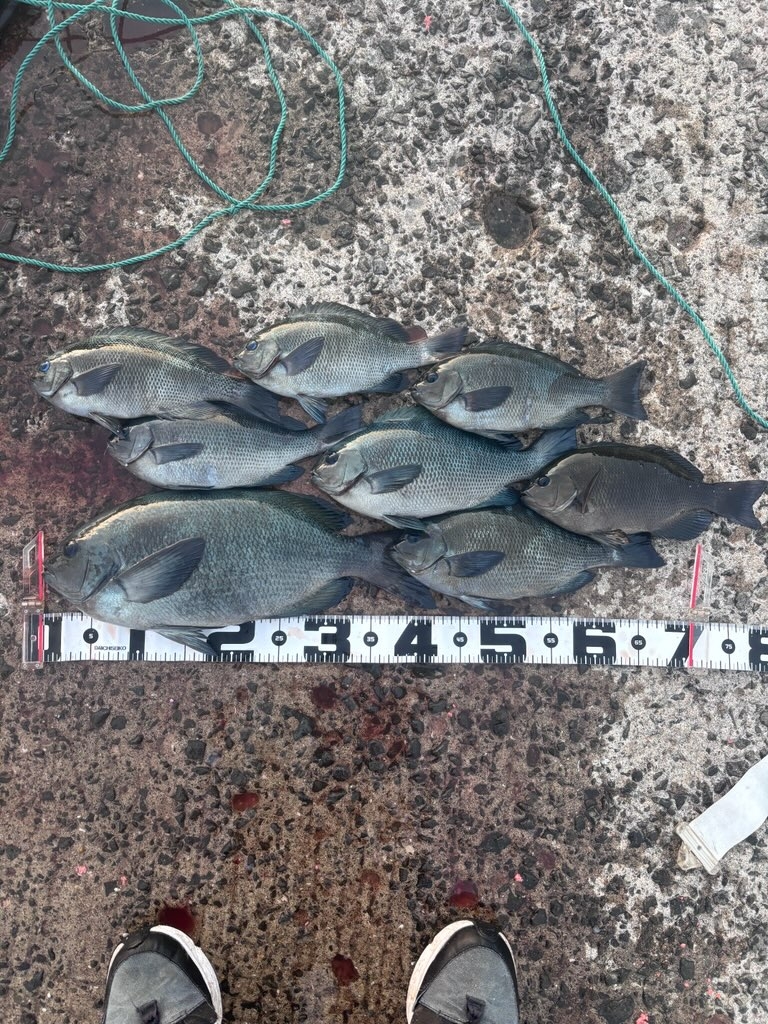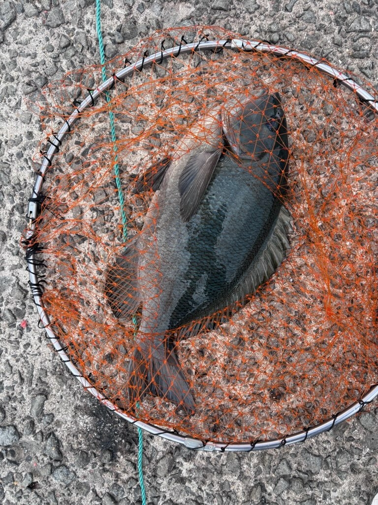 竿4本弱まで飛ばしウキを少し沈めて2ヒロ程から張っていくと、2投目で42㎝のクロが来ます。