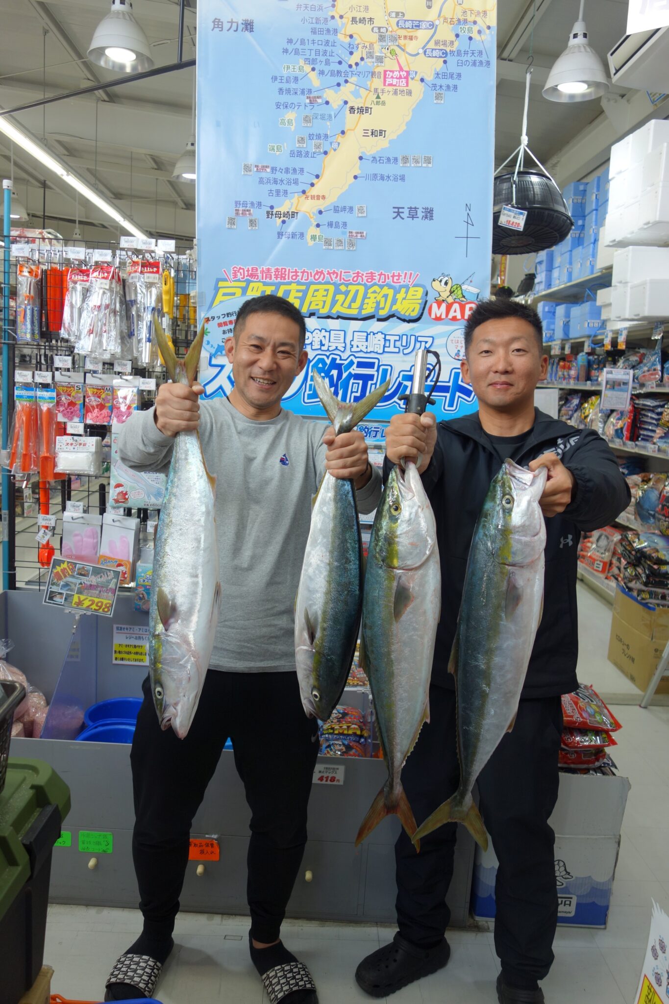 長崎戸町店 瀬戸です(^^♪本日は柴山様 山浦様より魚を持ち込んで頂き誠に有難うございます。72㎝ー3.24㎏を頭にブリが4本その他にもネリゴが数匹と大漁報告を頂きました。流石です!(^^)!釣り場は伊王島方面とのことです(≧▽≦)また釣果が上りましたら是非当店へ持ち込んで下さいね!!!スタッフ一同心よりお待ちしておりますね(*^▽^*)