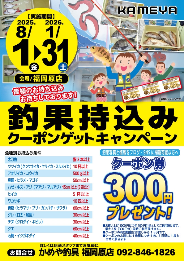 かめや釣具福岡原店 岩田です。