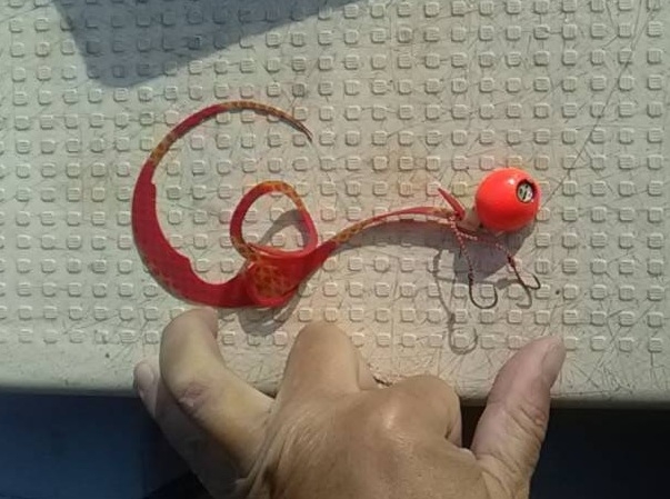 おニューのタックルで、その日は激渋状態の風爆風、釣れたのは1匹のみの記念魚でした。もう記録更新は(90アップか(*^。^*))厳しいんでタイラバをあんましてなかったんですが、最後にのんびり行く事に。