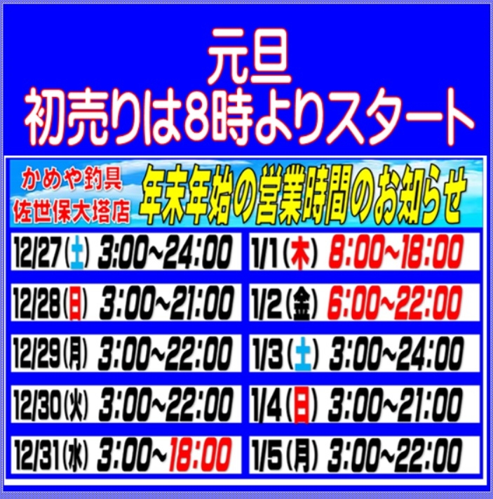 明日の元旦は8時から初売りとなっています。
