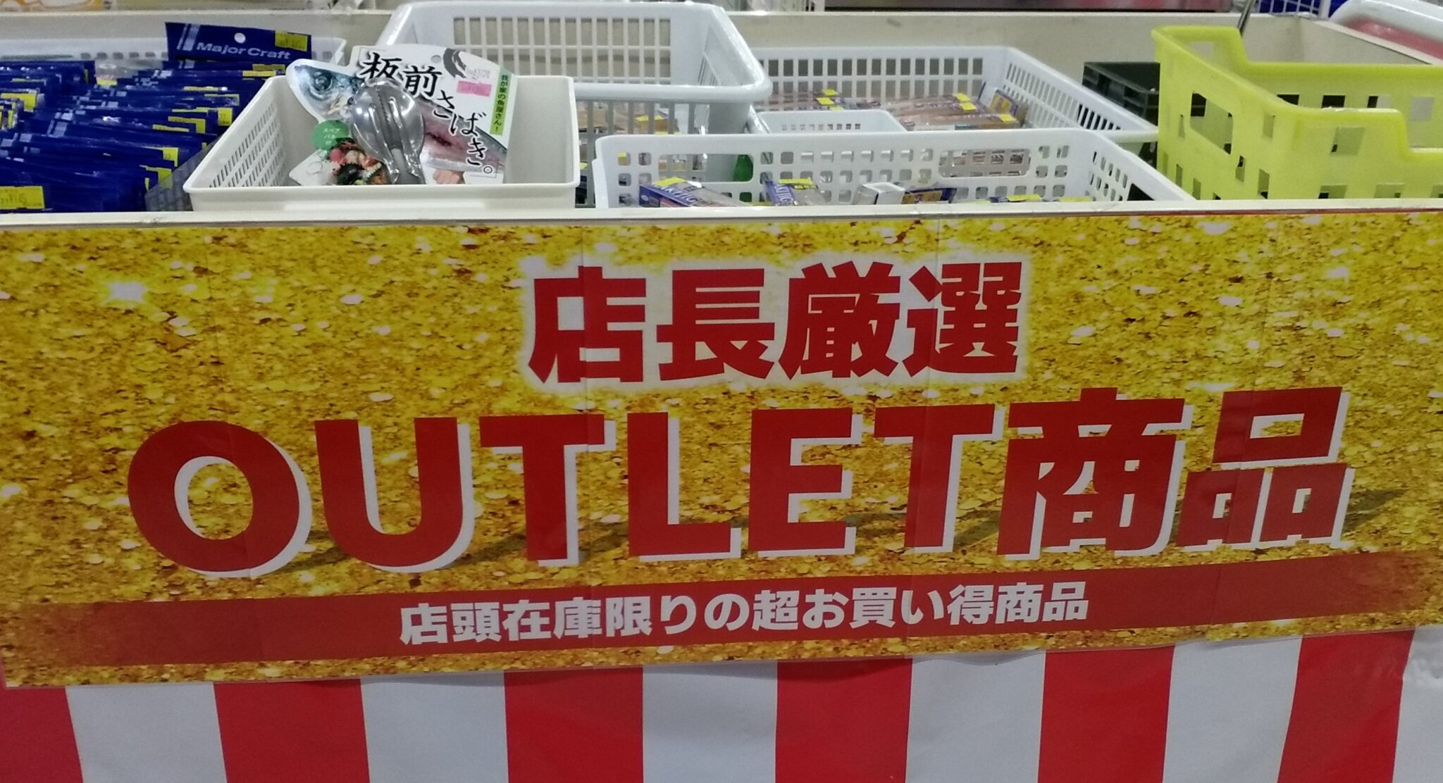 店頭在庫限りの超お買い得商品コーナーはどどどーんとレジ前です!