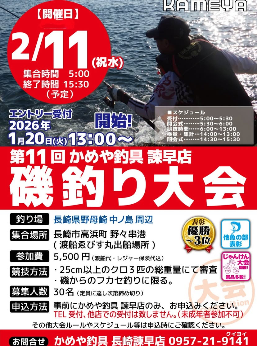 かめや釣具諫早店開催、磯釣り大会!!