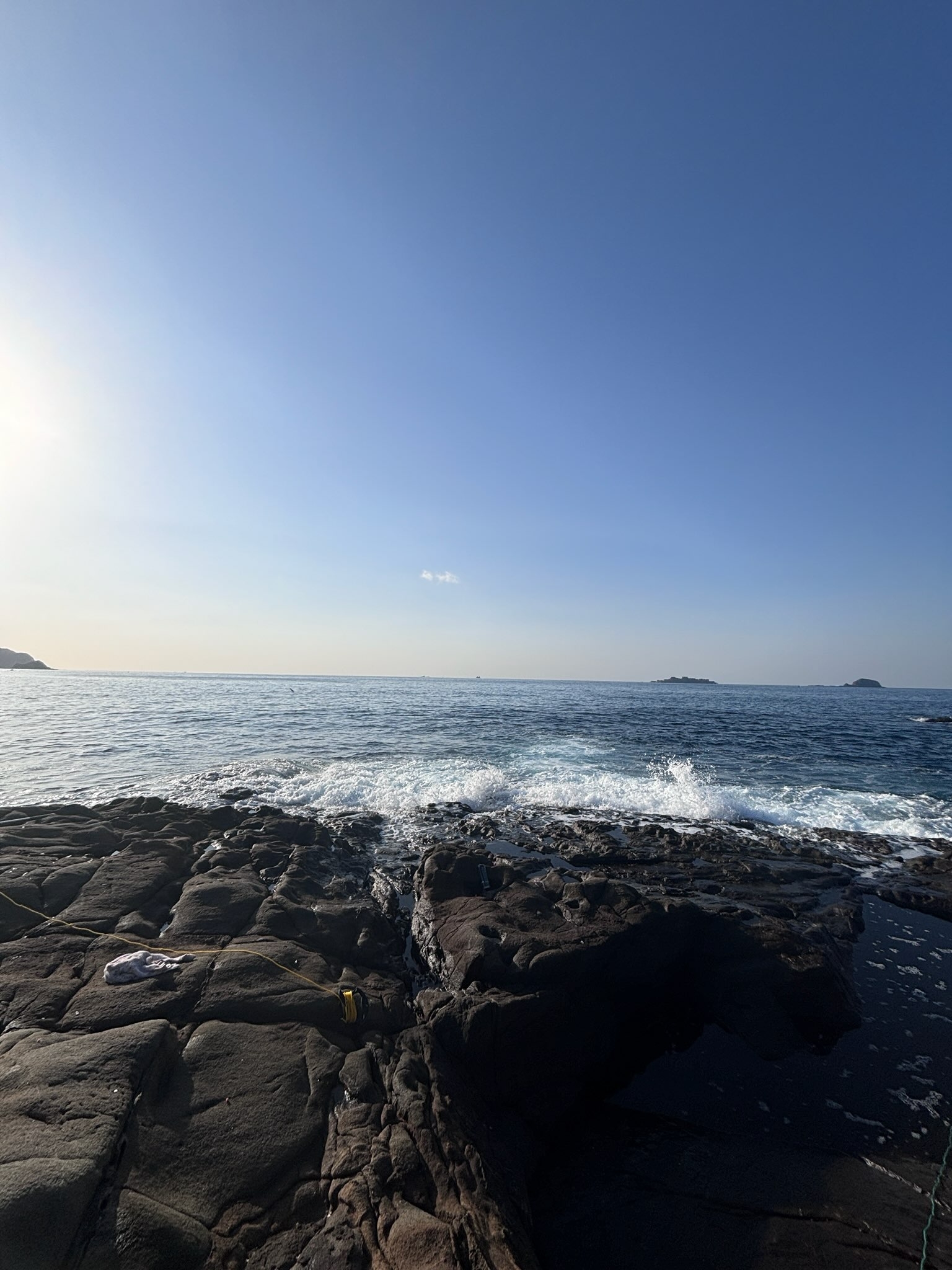釣場着く前にいい天気という事もあり、砂浜で景色を写真撮影。