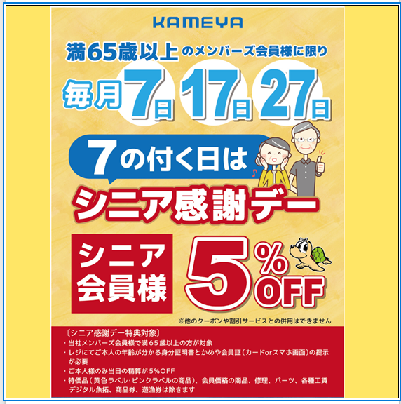 満65歳以上のメンバーズ会員のお客様限定で対象商品がすべて5%OFFになります!!