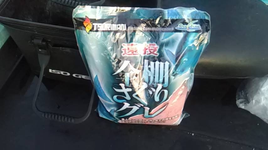 満ち潮狙いで集魚剤は「全棚さぐりグレ」を使用。撒き餌さを撒くと潮は動いている。