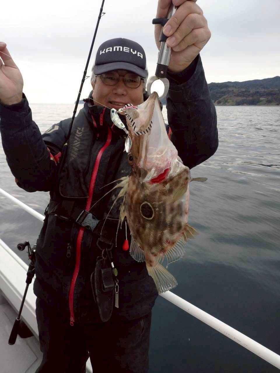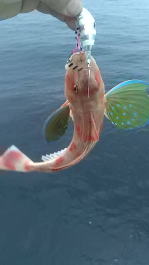 船長は橙のヘッドにグローのネクタイを使用して安定してバイトがあったので、自分もグローと白の玉神を使用。バイトの連続となり