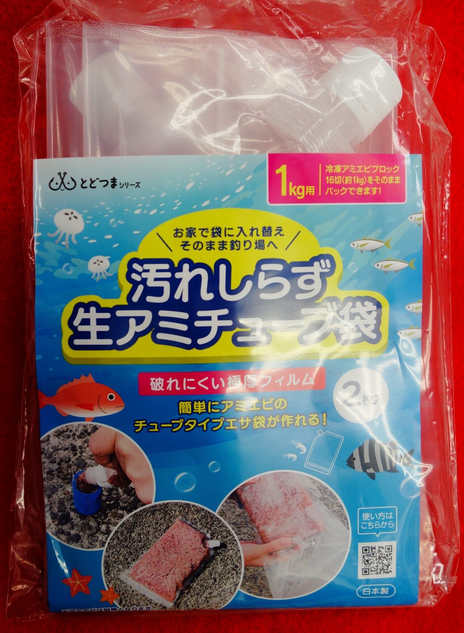 破れにくい極厚ビニールで冷凍状態の16切のアミが丸々入るチューブタイプの