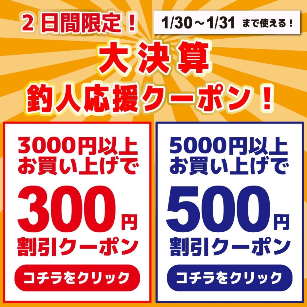 ただいま 30・31日の2日間限定で使える『大決算LINEクーポン』が絶賛配信中です!
