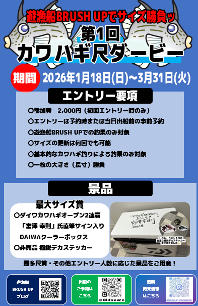 そして、ブラッシュアップさんでは現在【第一回 カワハギ尺ダービー】を開催中‼🥳