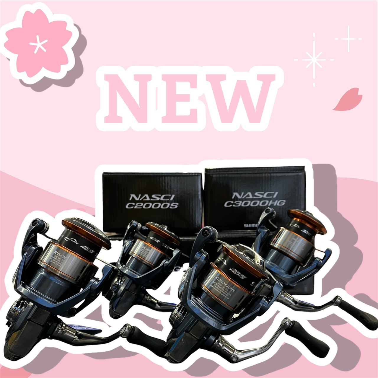 こんにちは🐟シマノ様より新製品リール入荷しましたーーーー🌸NASCI2000~4000番手を入荷しております!新製品受注キャンペーン対象🌸ご購入でかめや金券プレゼントです🎁新製品買うならかめやできまり!