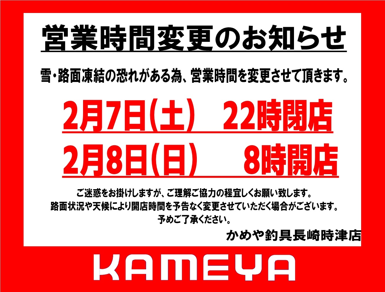 路面状況、天候により開店時間を予告なく変更させていただく場合がございます。