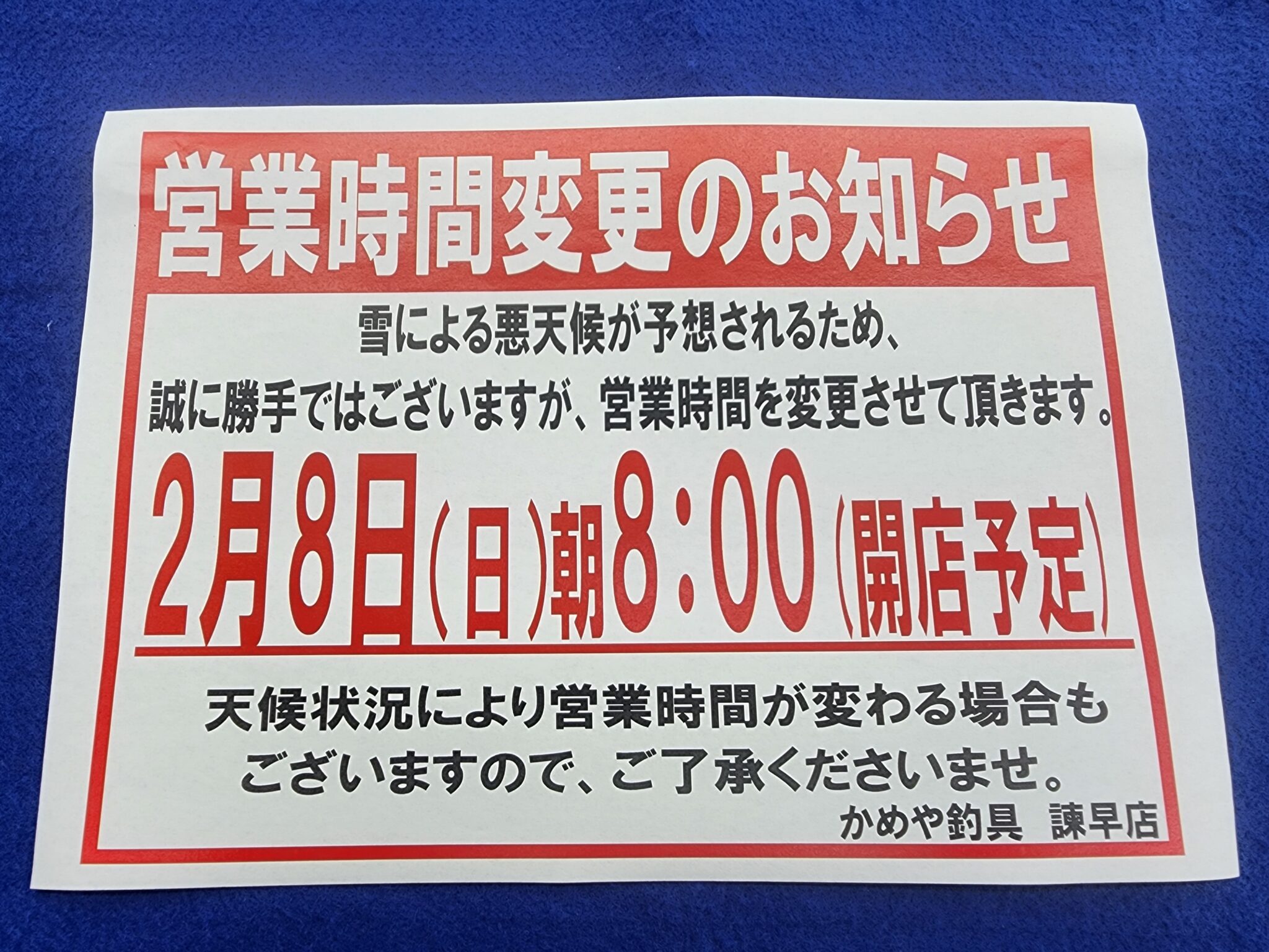 明日2月8日(日) 雪による悪天候が予測されますので、