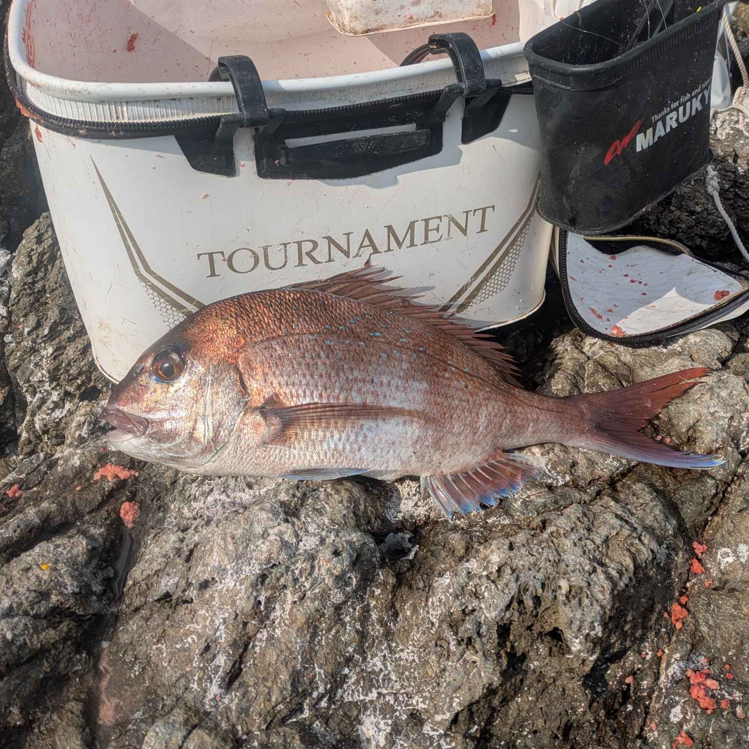 この日は、クロと同じタナ3ヒロ半程ですがツケエサが残るタイミングで少し長く流すと中型40㎝~50cm程のマダイもアタリ3匹釣れました。