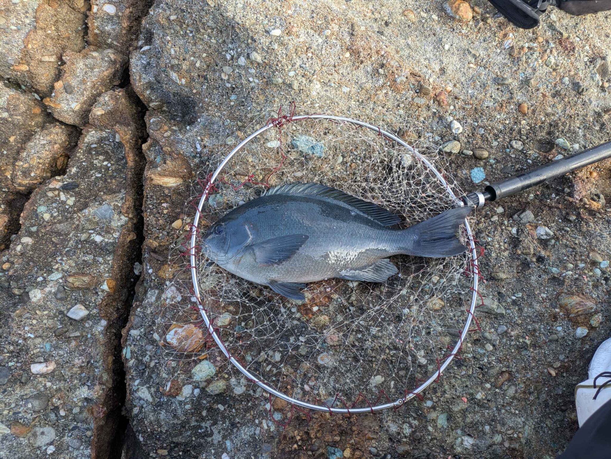 近距離~中距離15~20mを狙いますが、反応イマイチで30㎝~35㎝の尾長がポツポツ