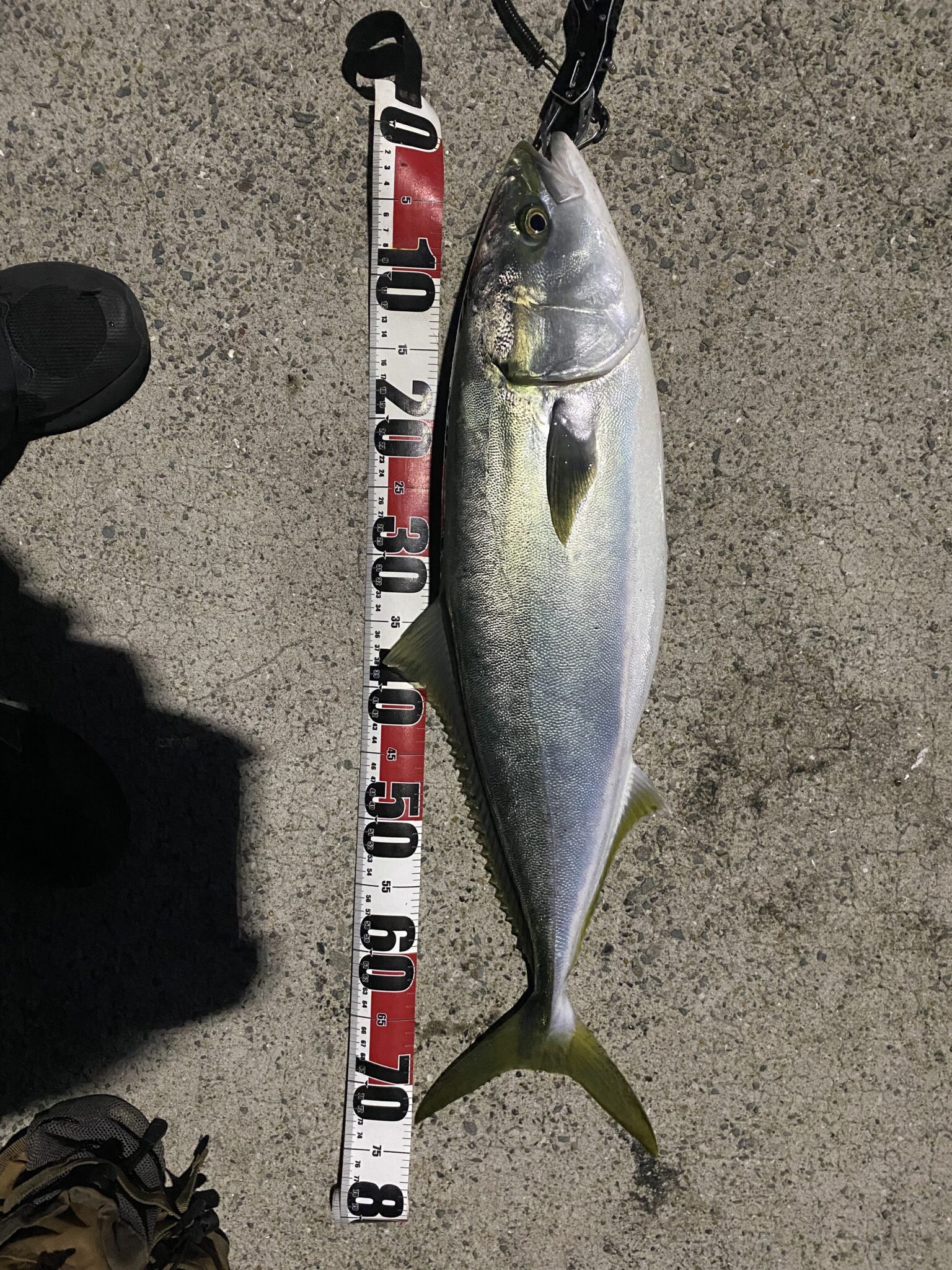 どうも、かめや長崎時津店井下です!先日、畝刈方面へエギングをしに行って来ました。夕マズメで潮のタイミングもいいのに釣れないなと思っていると青物のボイルが!たまたま持って来ていたショアジギングロッドに持ち替えルアーを投げると直ぐにブリには届きませんでしたが75㎝のヤズが釣れてくれました!!!本命のイカは釣れませんでしたがとても楽しい釣行になりました!