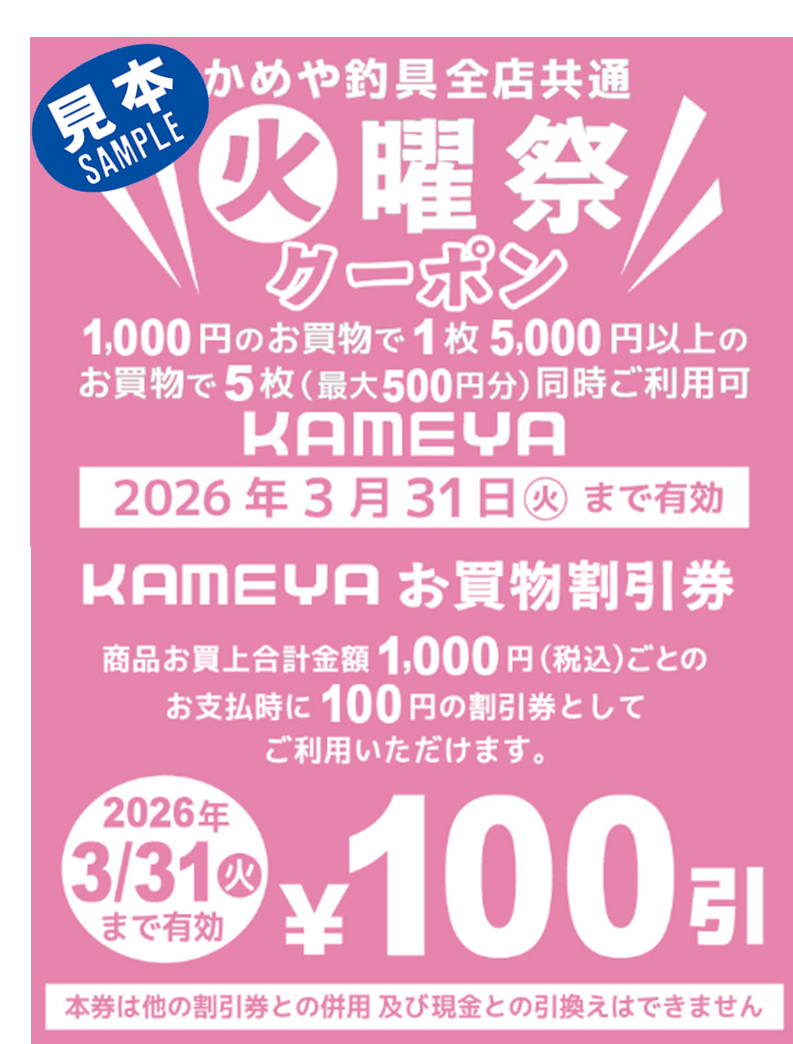 こんにちはかめや釣具長崎時津店さかいです大変な雨ですね悲しくなってしまいますでも今日はクーポン配布の日!お買物をされた方にクーポン券500円分をプレゼントしてます