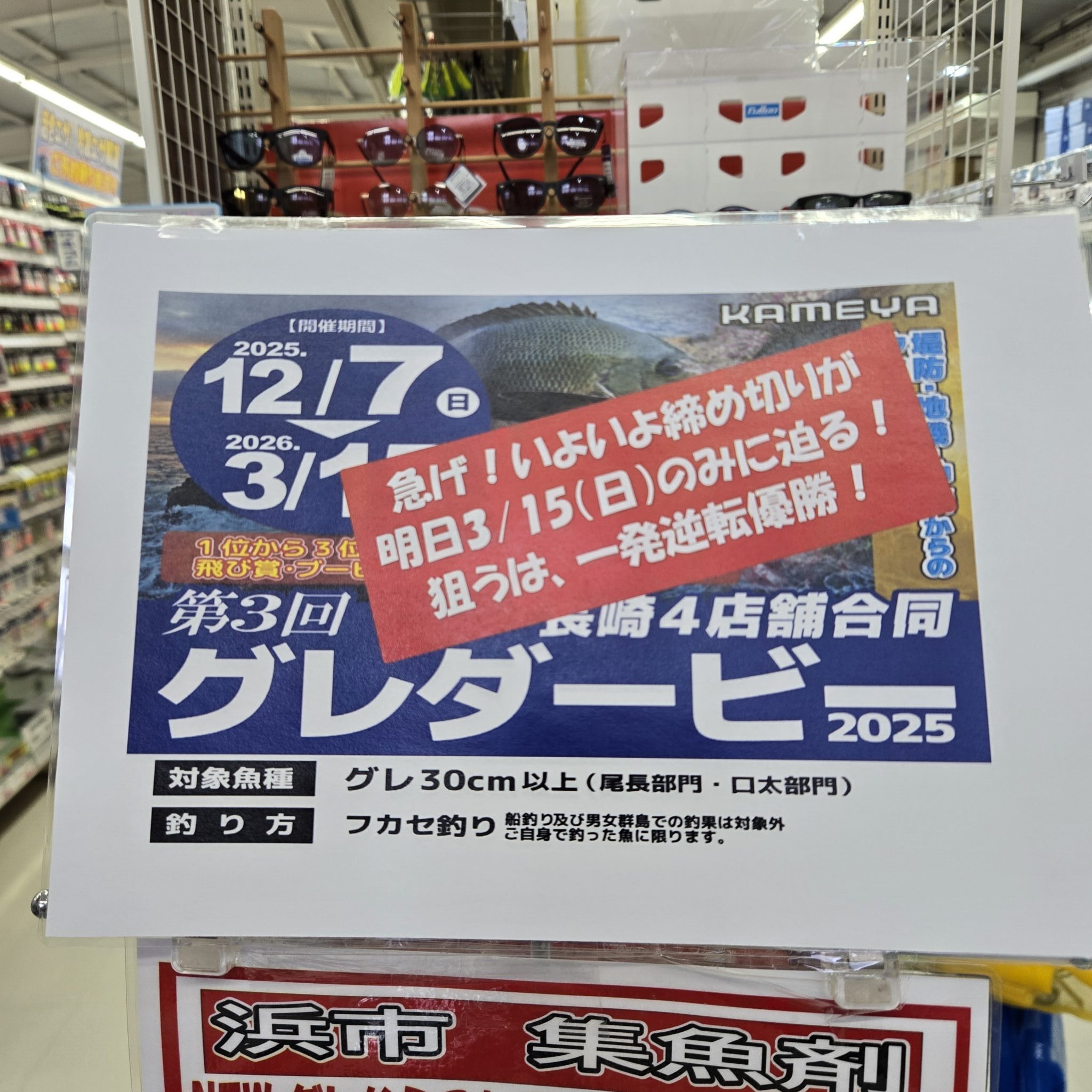 #かめや釣具 #かめや釣具長崎時津店 #長崎 #3/15まで
