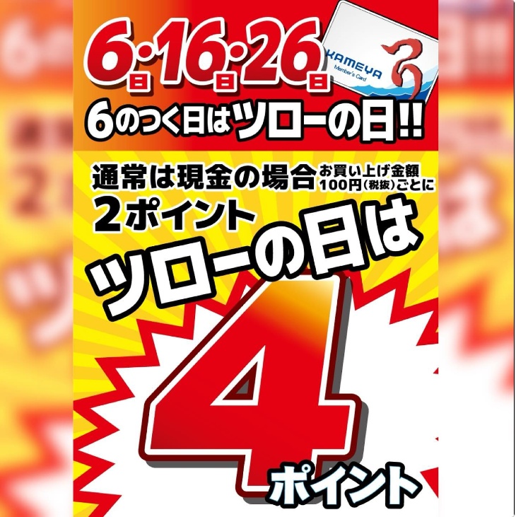 メンバーズカードは、かめや釣具でお買い物の際にポイントが貯まるシステム。