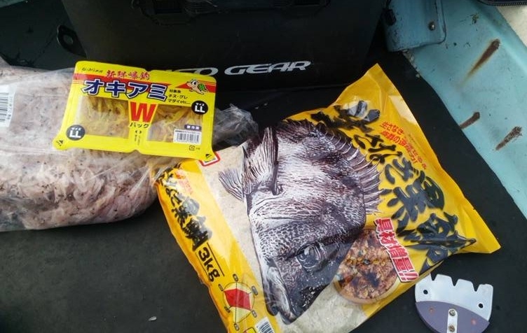 伝馬船で慎重に渡り、急いで撒きエサを混ぜ混ぜ( ..)φ。