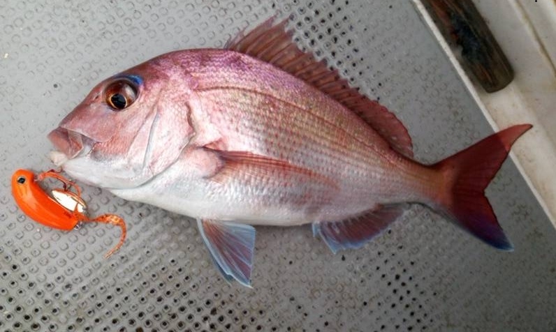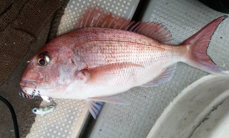 釣友2人が小型の真鯛をキャッチ(なみ玉とスタートのタイラバでした)。
