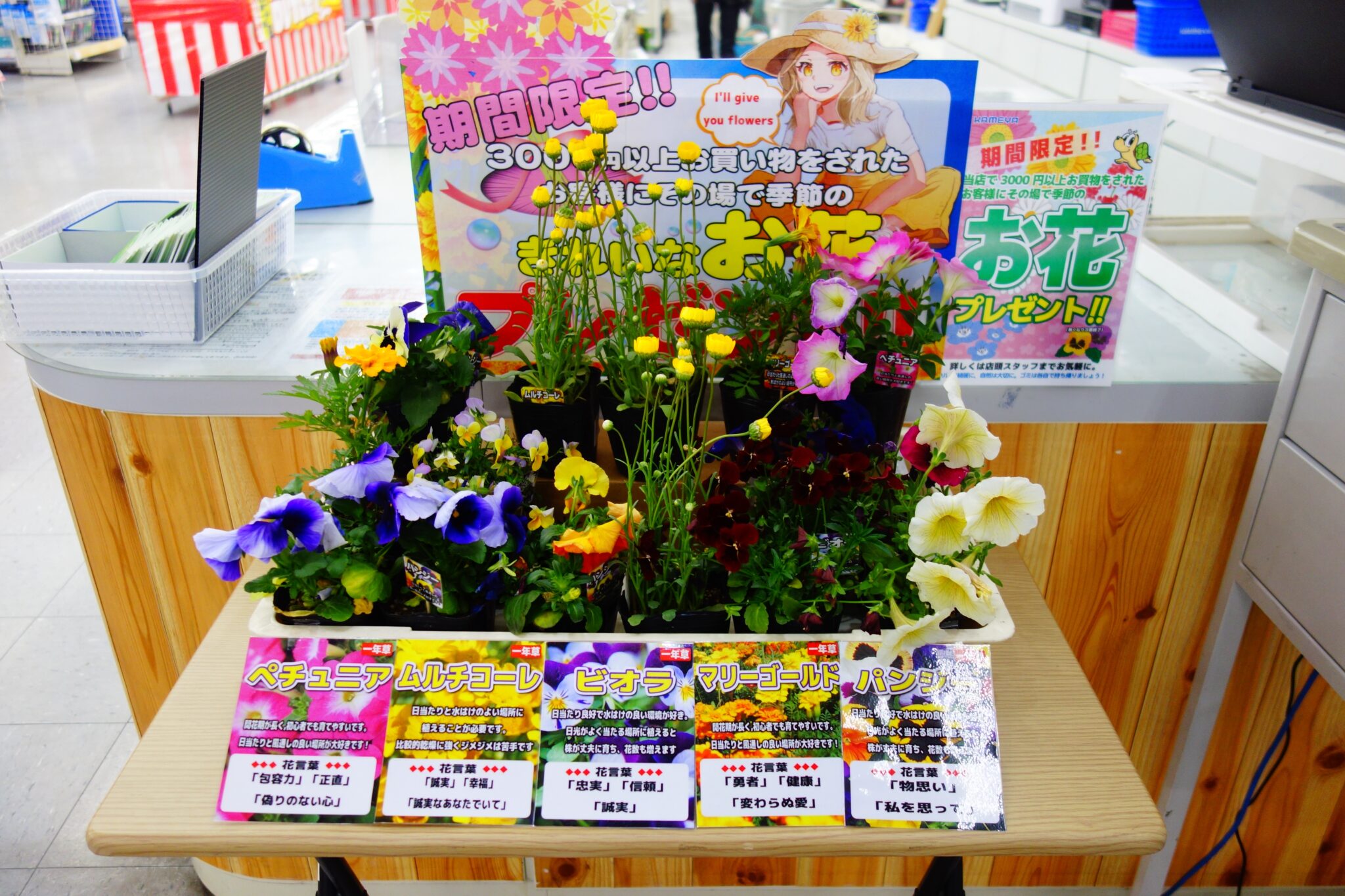 3000円以上お買物されたお客様にその場で季節のお花プレゼントしております。