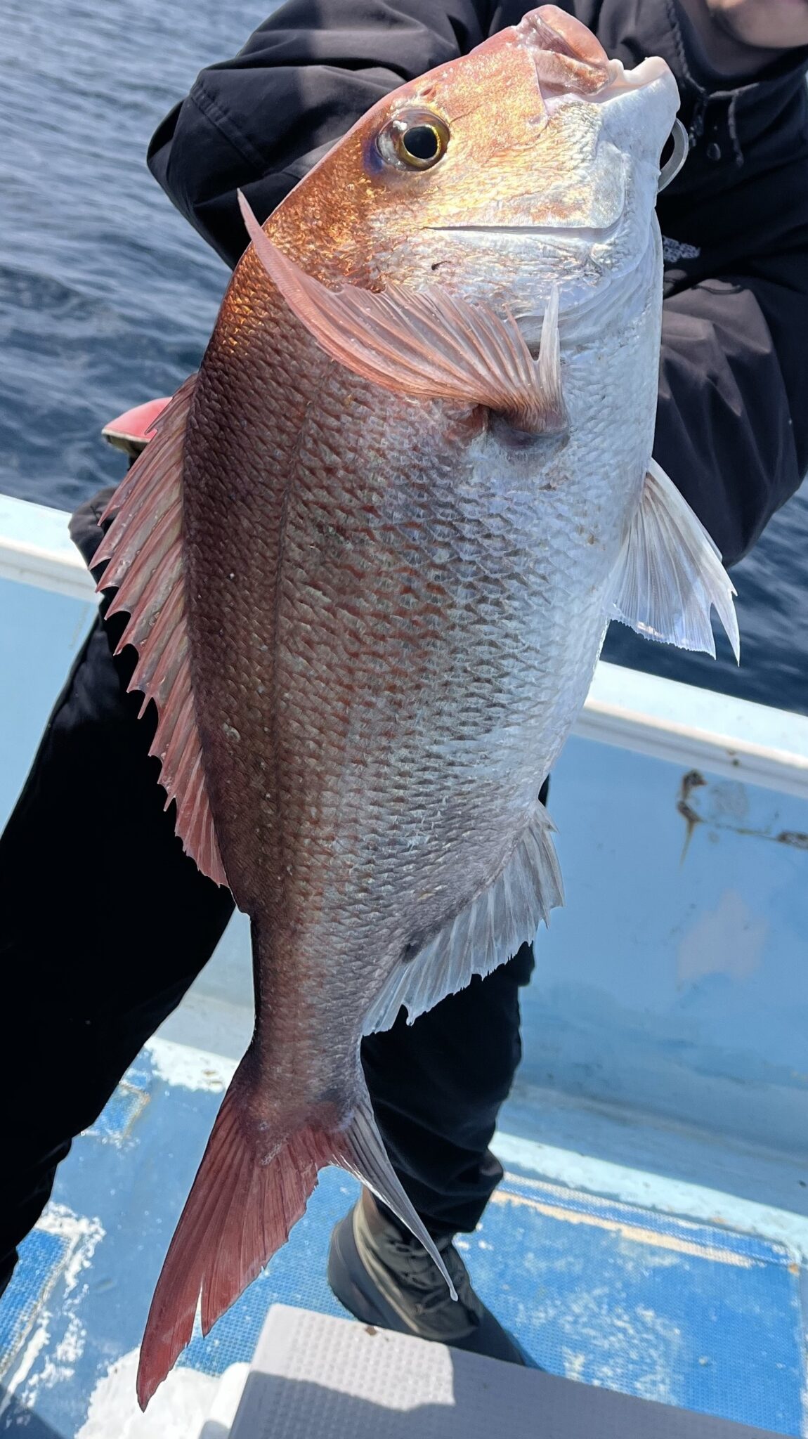 ポイント到着後一発目知り合いにHIT!良型のマダイ!